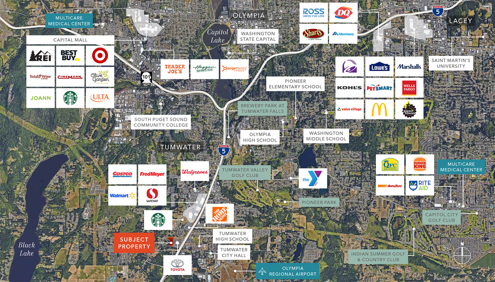 Strategically positioned within a growing South Puget Sound submarket, the property benefits from significant nearby retail investment, including the recently delivered Kingswood Center—a 9+ acre commercial hub featuring national tenants such as Starbucks, Chipotle, Wendy’s, and a new hotel. This expanding retail corridor reinforces long-term tenant demand and enhances the overall livability of the immediate area.
